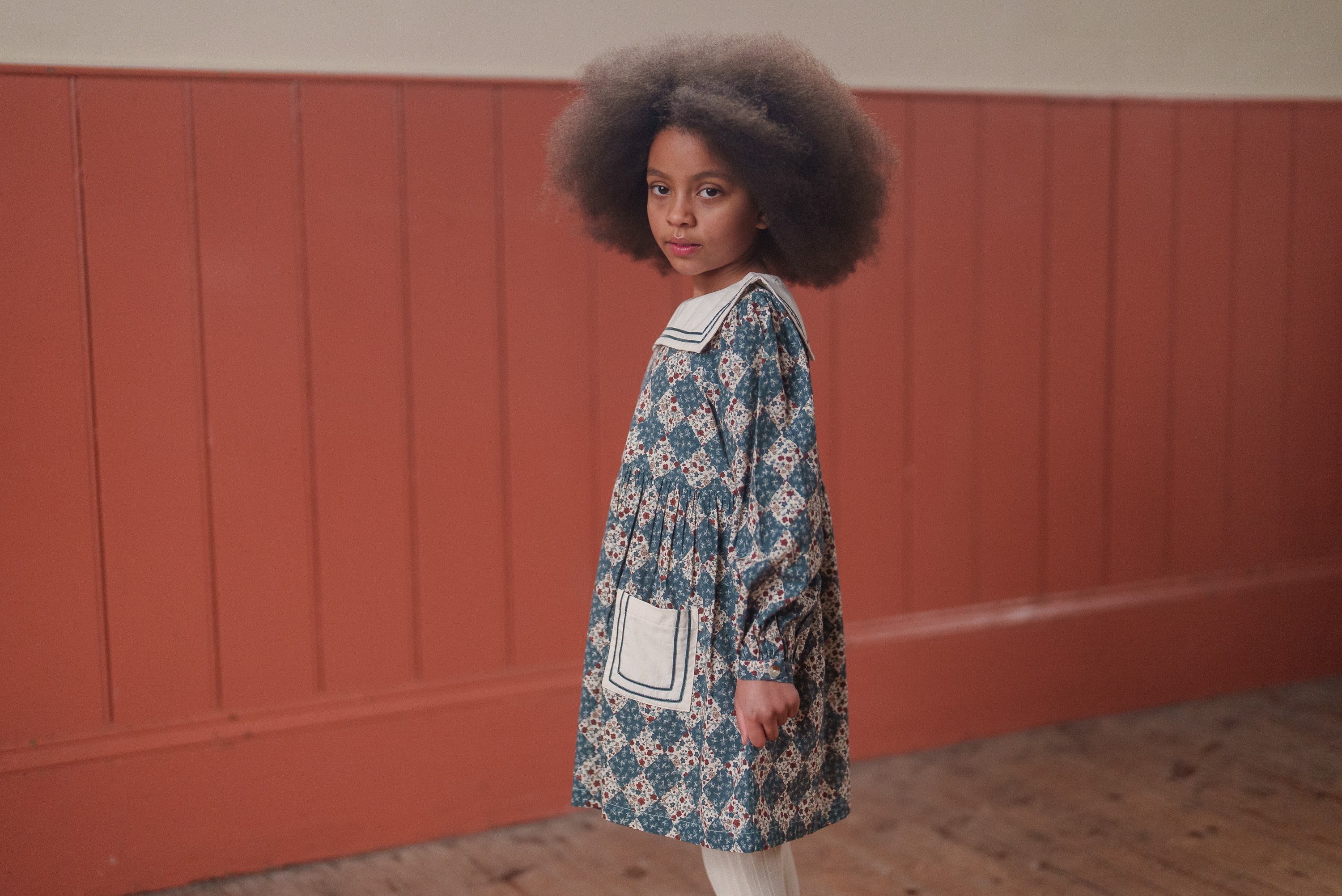 little cotton clothes/Eva Sailor Dress Harlequin Floral