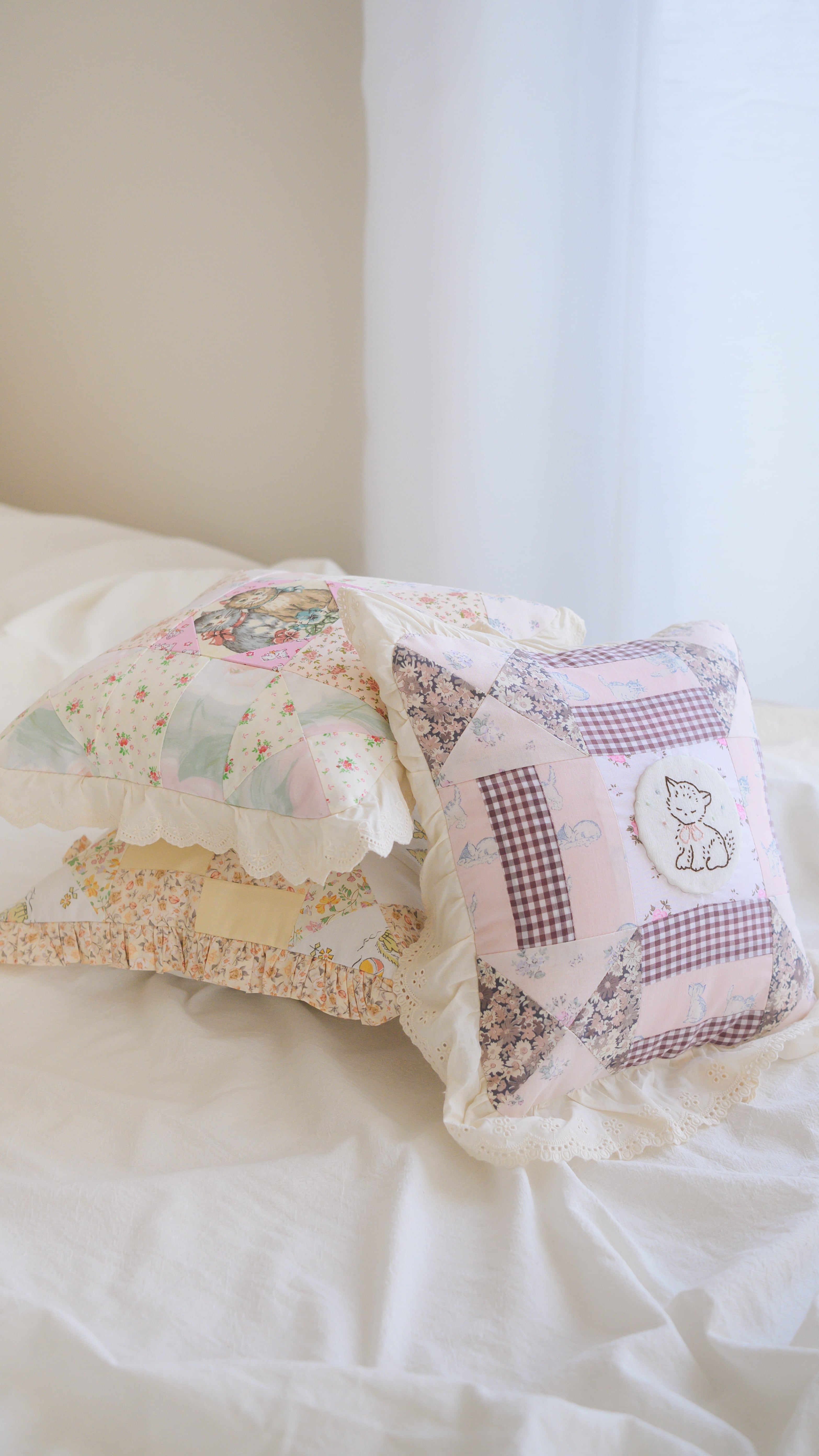 すやぁ。/ vintage cushion (刺繍pink)