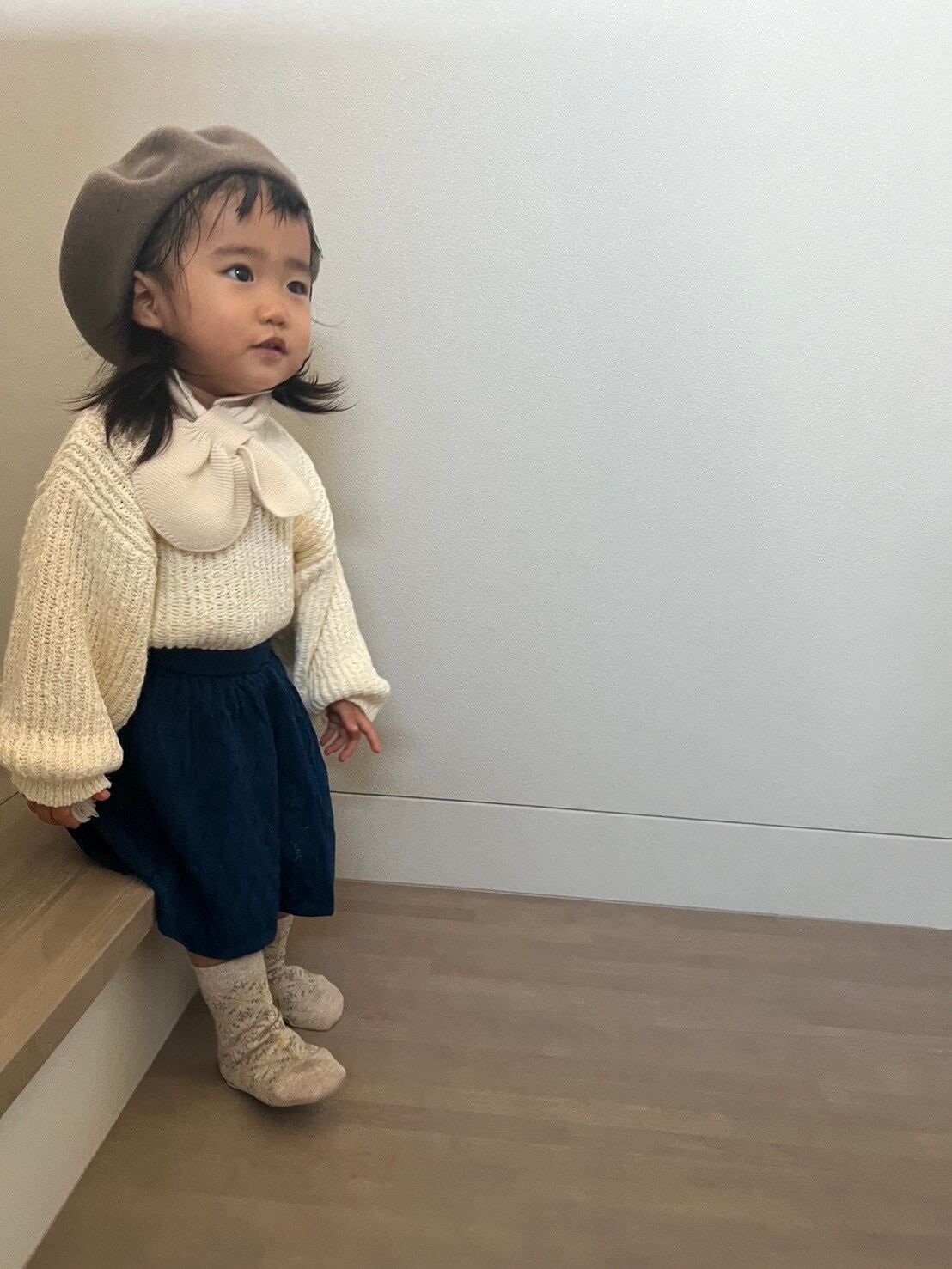 このネイビーのスカートは